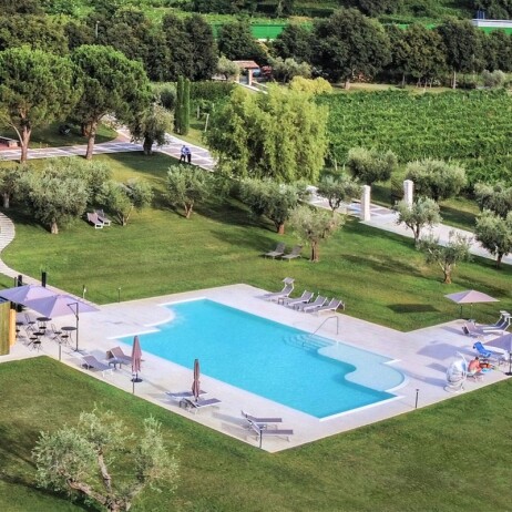 - Pooleingang mit Liegestühlen (in der Saison)