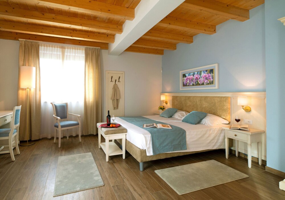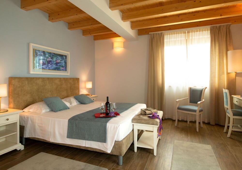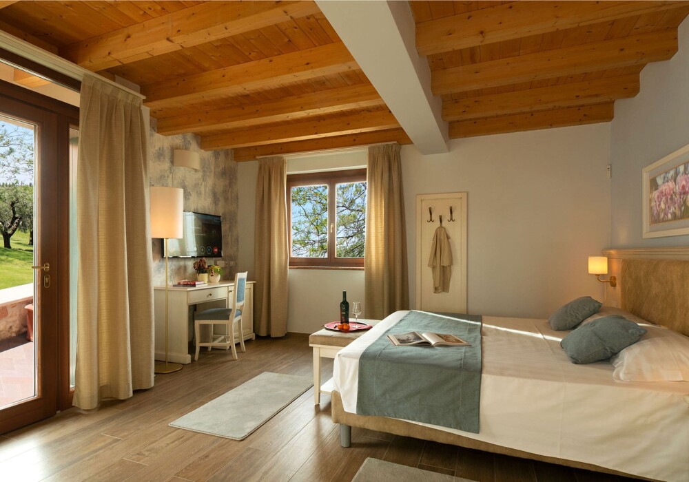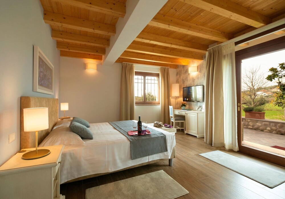 From these rooms, the view is made even more exclusive by the private large terrace, which is ideal to relax in the sun and enjoy unique moments of serenity. They harmoniously combine classic style with the comfort of the Relais and the beauty of the countryside.